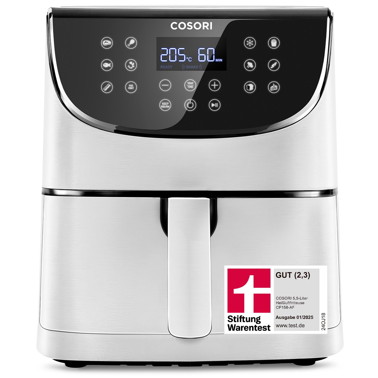 COSORI Heißluftfritteuse CP158-AF, Testsieger 2024 Stiftung Warentest, 11-in-1 Airfryer mit Shake-Reminder, Online-Rezepte, 97,3 Prozent ölsparend, spülmaschinenfeste Körbe, Weiß